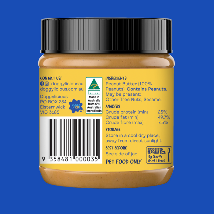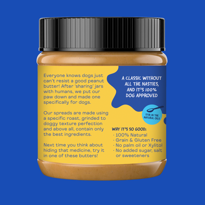 Everyone knows dogs love peanut butter. We wanted to put our paw down and make one specifically for dogs. Our doggy butters are made using a specific roast, ground to doggy texture perfection and above all contains only the best ingredients. All our doggy butters are made using human grade ingredients and 100% natural.